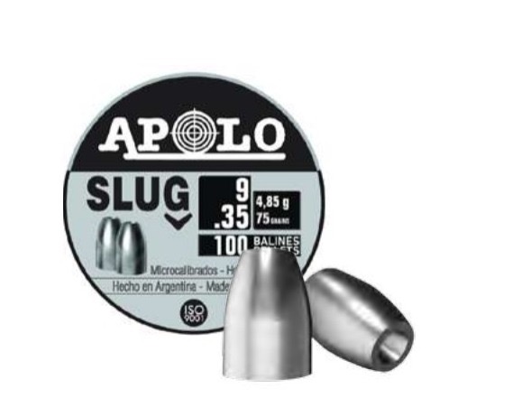 Chumbos Apolo Slug Calibre 9 mm / .35/ 75 grains x 100 Unidades